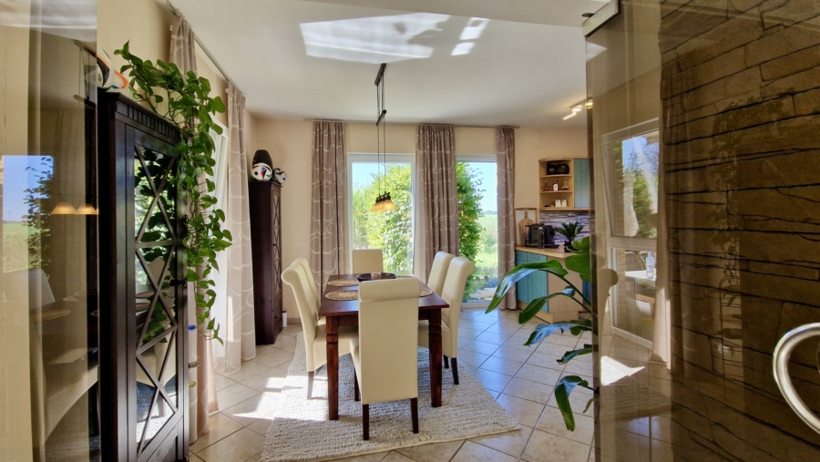 Besondere Ausstattungsmerkmale: App-gesteuerte Beleuchtung, Rollläden und Bewässerung, eigener Gartenbrunnen, Blitzschutzanlage und ein massiver Doppelcarport mit elektrischem Tor sowie Lagerflächen.