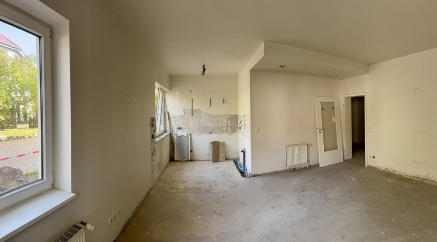 Die Küche ist inklusive und bietet eine klare Wertkomponente von rund 12.000 €. Alle weiteren Ausstattungsbestandteile, insbesondere Fußböden, Sanitäranlagen und Malerarbeiten, liegen im Bereich des Erwerbers, der diese nach eigenem Bedarf und auf eigene Kosten implementieren kann.